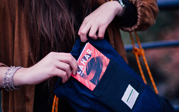 Posterzine because Lahar is to be read, opened and hung, becoming a real poster. Every two months it does a thematic editorial call to inspire written and visual production to all who wish to get involved.