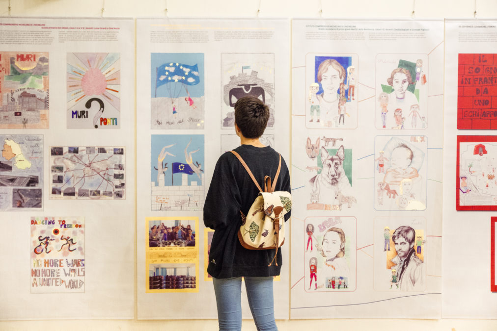 Gli spazi del Goethe-Institut hanno ospitato 65 disegni e collages, accompagnati dal video-racconto di Renato Di Gaetano, realizzati da dodici classi di cinque scuole torinesi che hanno sviluppato un progetto sul tema del muro e del confine a seguito di un percorso didattico interdisciplinare dedicato all’uso delle fonti iconografiche in storia.