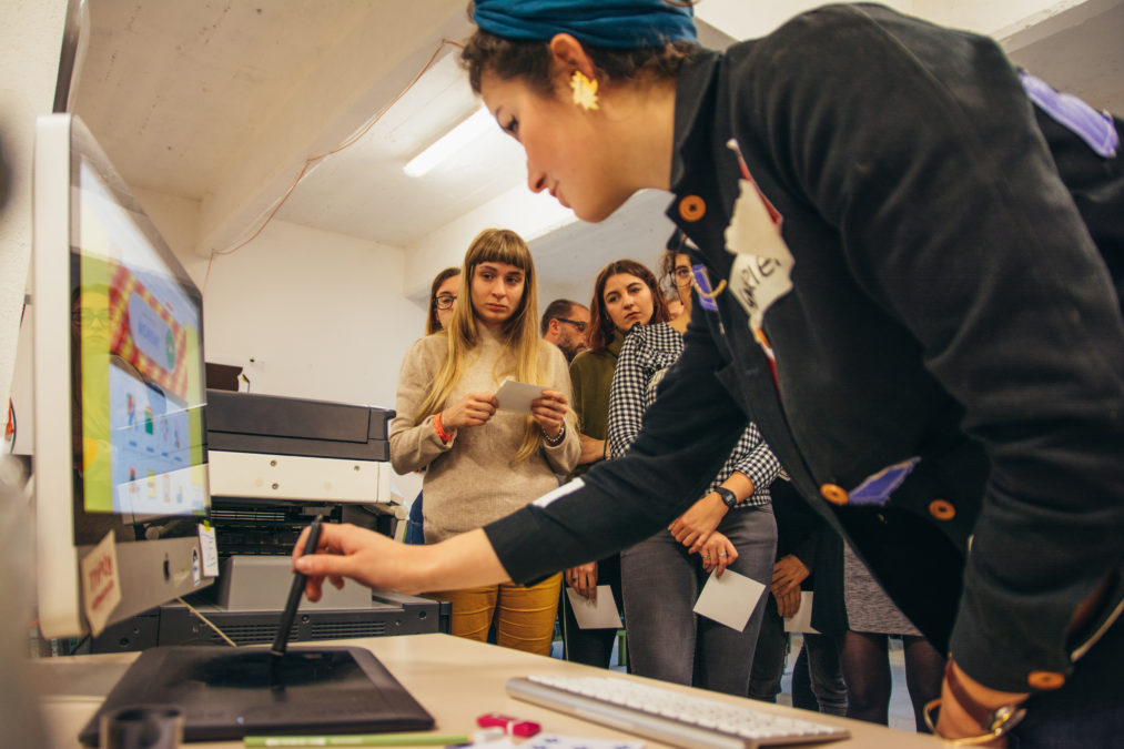 La Risograph è nata come stampante da ufficio ma, da alcuni anni, sta diventando il nuovo must have dei graphic designer. Riscoperta e subito amata, è una via di mezzo fra la serigrafia e la stampa offset. Origina stampe uniche, colori intensi, sovrastampe leggermente fuori registro e permette di raggiungere ampie tirature in modo ecosostenibile. I partecipanti del workshop, sotto la guida di Risotto Studio, hanno creato poster sperimentali, colorati e… stupendamente imperfetti.