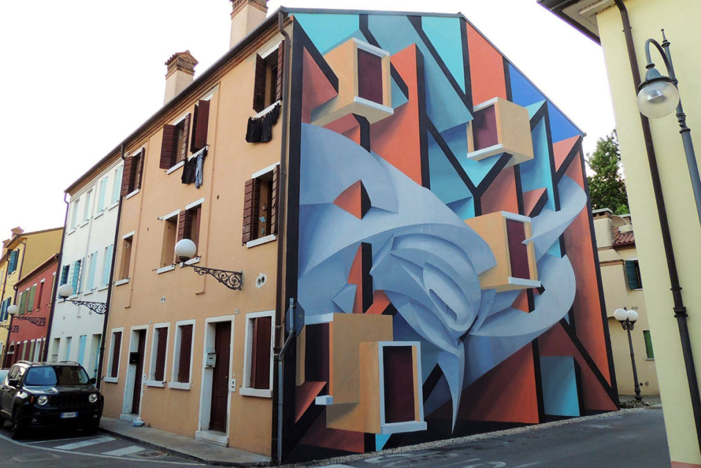 Dopo numerose collaborazioni con street artist italiani ed internazionali, questo è il momento dell’artista Joys originario di Padova ed attivo da più di vent’anni. La personalissima ricerca dell’artista è un mix di geometrie e precise regole logiche che attraverso l’uso di colori perfettamente bilanciati riesce a creare piani e dare profondità e carattere alla pareti. Un lavoro originale e non scontato che potrà essere apprezzato assistendo ala performance live che porterà alla realizzazione dell’opera.