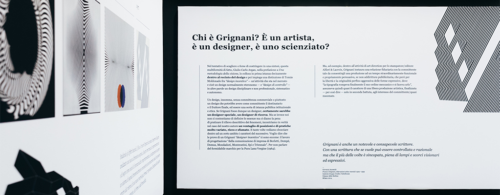 Grignani ha saputo giocare con la sua arte dando vita a identità complesse, immagini dinamiche risultato dell’equilibrio fra forza interne ed esterne. Ha manipolato scientificamente la superficie creando una Gestalt “dinamica”, ha ricercato l’essenziale portando l’attenzione oltre i limiti dell’opera stessa.