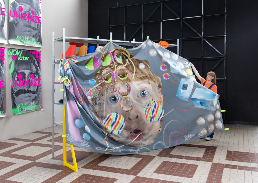 Dear Love,… esplora come il design possa esprimere affetto e cura, interrogandosi su cosa accadrebbe se l’amore fosse al centro dei metodi progettuali e su come il messaggio di una lettera d’amore potesse essere condiviso con il mondo. In quanto mediatore delle emozioni, il graphic design può trasformarsi in una pratica che diffonde amore, collegandoci tra di noi, con altre specie e persino con la materia inanimata. La mostra presenta poster dipinti dai e dalle partecipanti che riflettono le loro personali riflessioni sull’amore, la cura e la connessione.