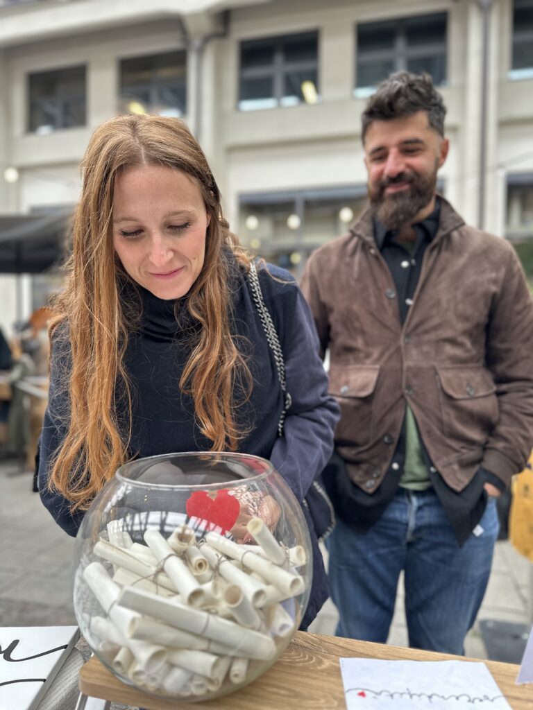 Soprattutto, potrete vivere un’esperienza speciale, un momento di poesia, emozione e connessione: ognuno potrà scoprire la propria “parola del cuore” e ricevere un pezzo unico, realizzato a mano sul momento.
