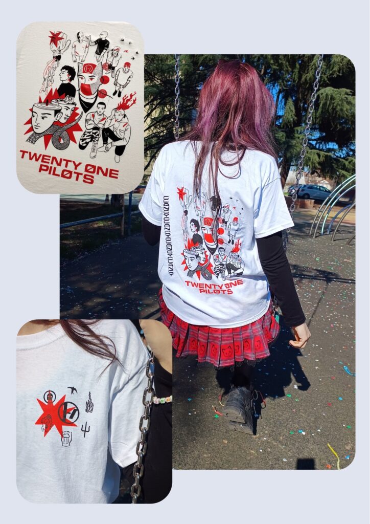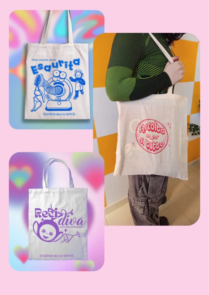 Realizzano diversi prodotti fatti a mano, a tema musicale e non solo, come t-shirt e borse illustrate stampate in serigrafia, cartoline e adesivi disegnati da loro, oltre a molte altre creazioni. Si occupano personalmente di ogni fase della produzione, dall’illustrazione alla colorazione dei tessuti fino alla stampa, garantendo che ogni pezzo sia unico e curato nei minimi dettagli dall’inizio alla fine.