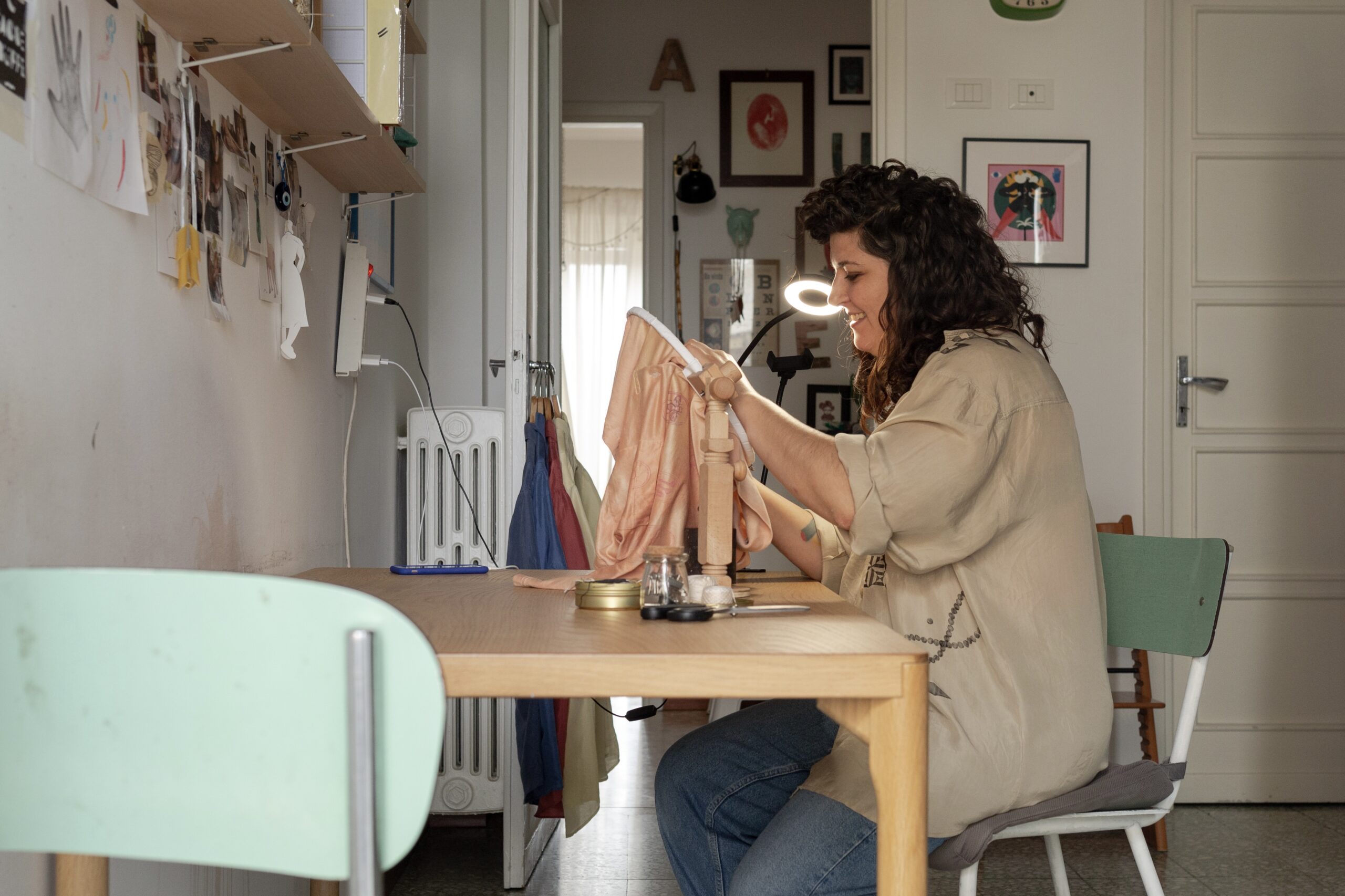 Con il progetto “Un’altra vita”, dà nuova vita a capi vintage e second hand, trasformandoli in pezzi unici attraverso il ricamo e la stampa con inchiostri vegetali.