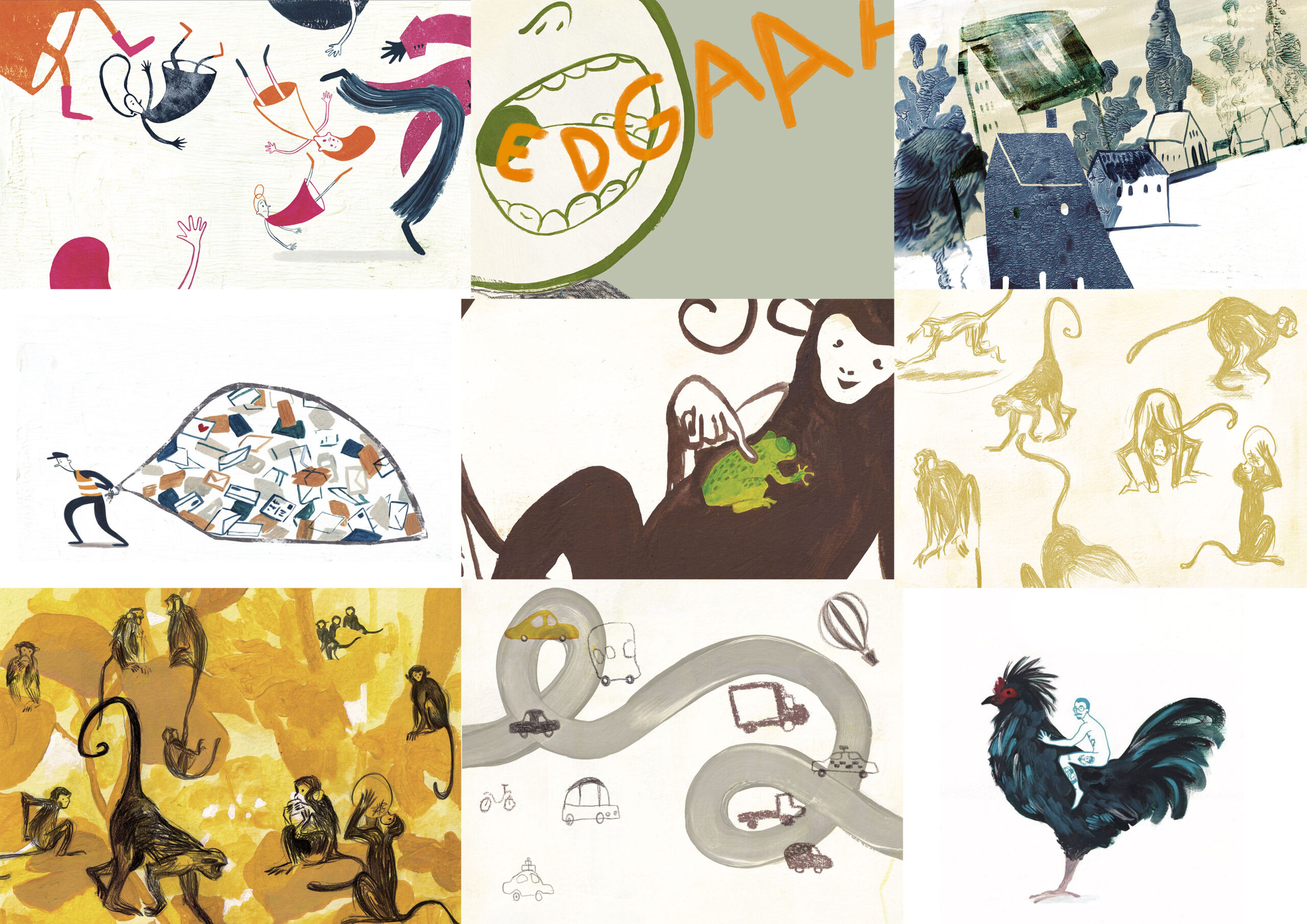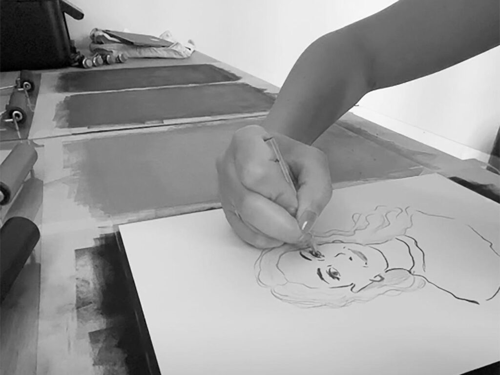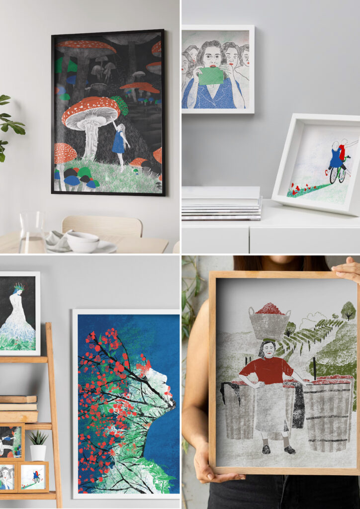 Realizza illustrazioni in bilico tra l’evocativo e l’onirico con tecnica digitale e tradizione, con il monotipo. Si occupa di temi sociali, introspettivi e fantastici.